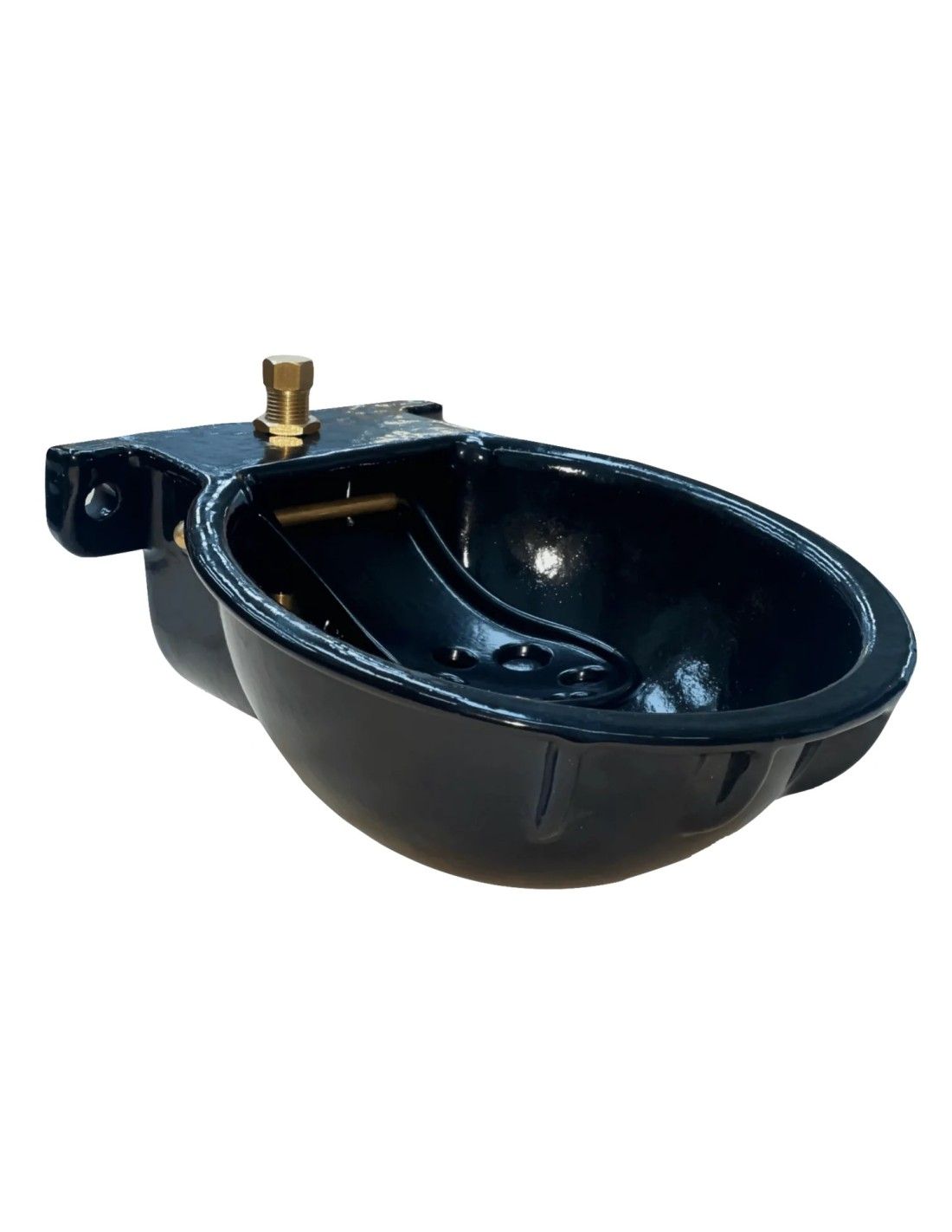 Abbeveratoio in ghisa smaltata completo di staffa per applicazione a tubo o montante a paletta ricambio FAR 13+FAR 8 per bovini ed equini a stabulazione fissa, di facile manutenzione.
