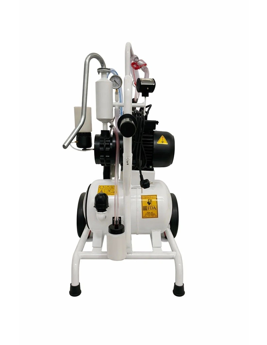 Struttura mobile su carrello, serbatoio del vuoto da 18 litri con regolazione e vuotometro integrato. Soluzione affidabile, igienica e certificata CE per una mungitura efficiente in stalla.