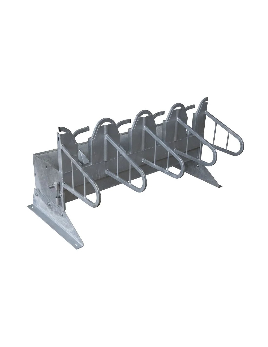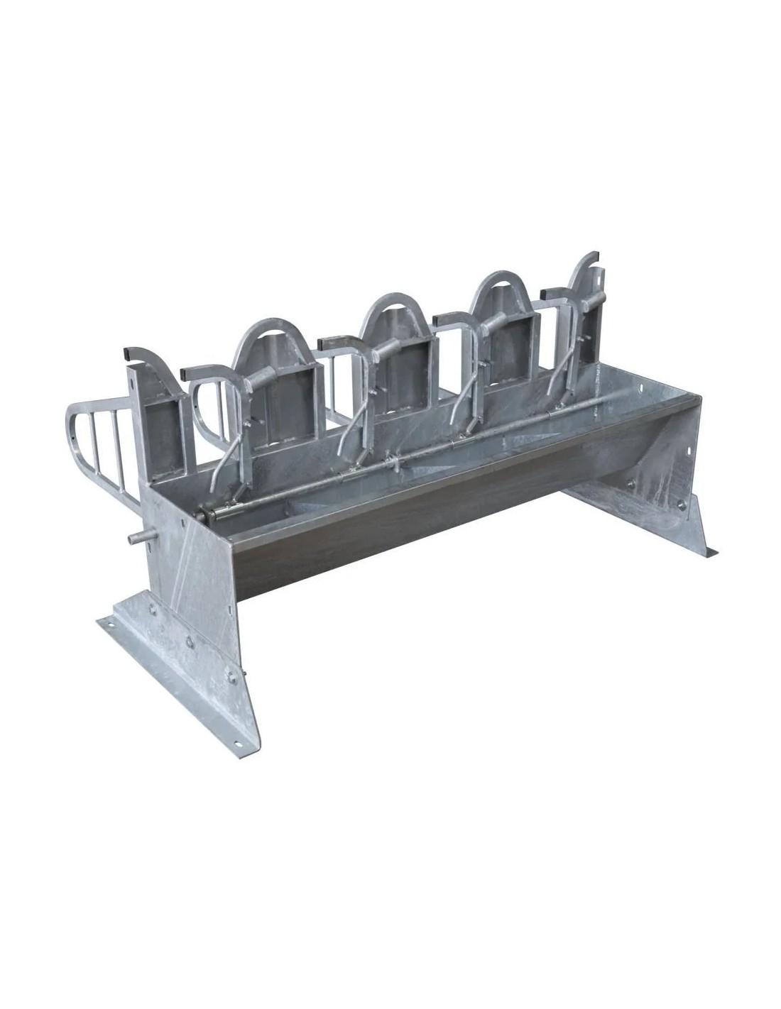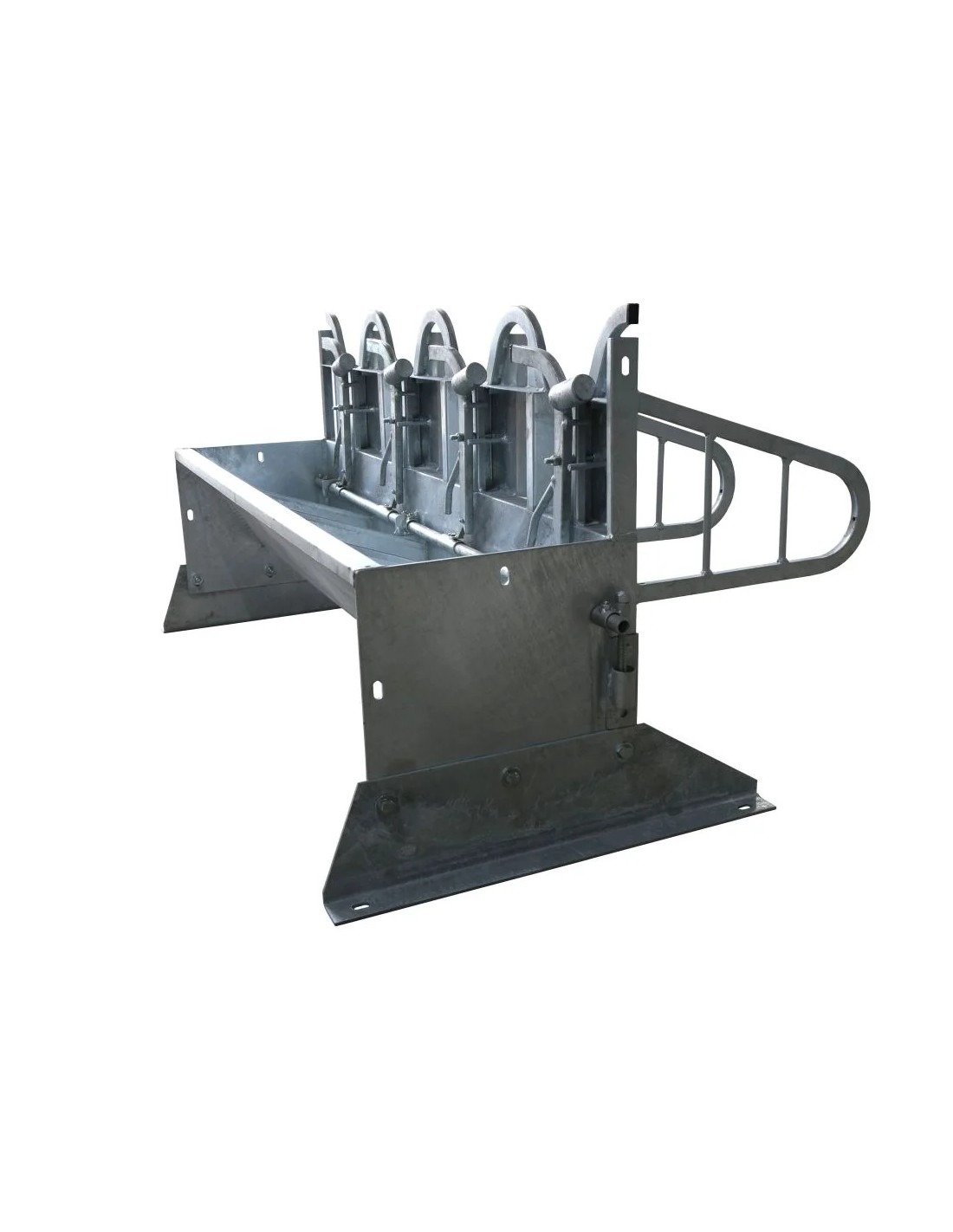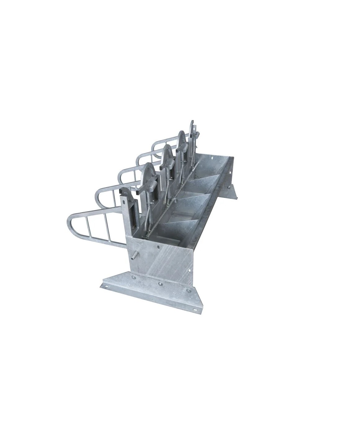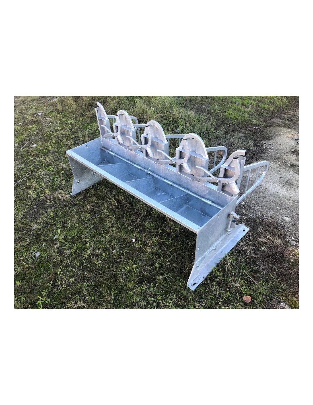 Autocattura con mangiatoia per pecore e capre modulare a 4 posti, interamente zincata a caldo e realizzata in Italia. Robusta, sicura e collegabile in serie per ampliamenti. Dotata di sistema di sblocco simultaneo, canaletta zincata con divisori. Dimensioni: 135×78×72 cm.