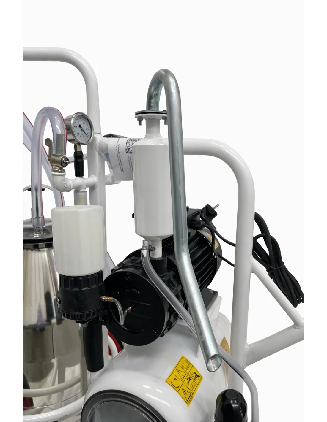 Il cuore del sistema è una pompa del vuoto a bagno d’olio da 250 litri/minuto, che garantisce una depressione stabile, silenziosa e continua, assicurando una mungitura delicata sugli animali e una maggiore durata dei componenti.